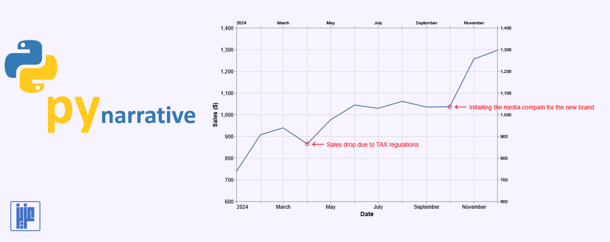 مكتبة (pynarrative) هي حزمة في بايثون تساعد على إضافة سرد قصصي للتحليلات بطريقة سهلة ومؤتمتة من خلال ربط التعليقات التوضيحية والارشادرات التفاعلية بالتغير في البيانات. لتوضيح طريقة عمل هذه الحزمة سوف نقوم في البداية بتفعيل المكتبات المطلوبة كما يلي: